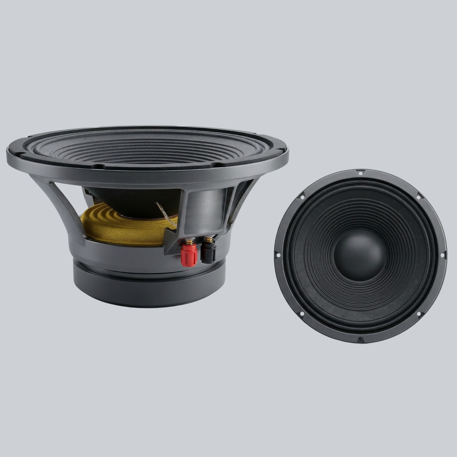 Alüminyum Döküm Şasi: Klasik sac kasalara göre çok daha sert ve dayanıklı olan alüminyum döküm çerçevesi (basket), yüksek ses basınçlarında rezonansı ve esnemeyi engeller. Ayrıca ses bobininde oluşan ısının hızla dağıtılmasına yardımcı olarak hoparlörün ömrünü uzatır.