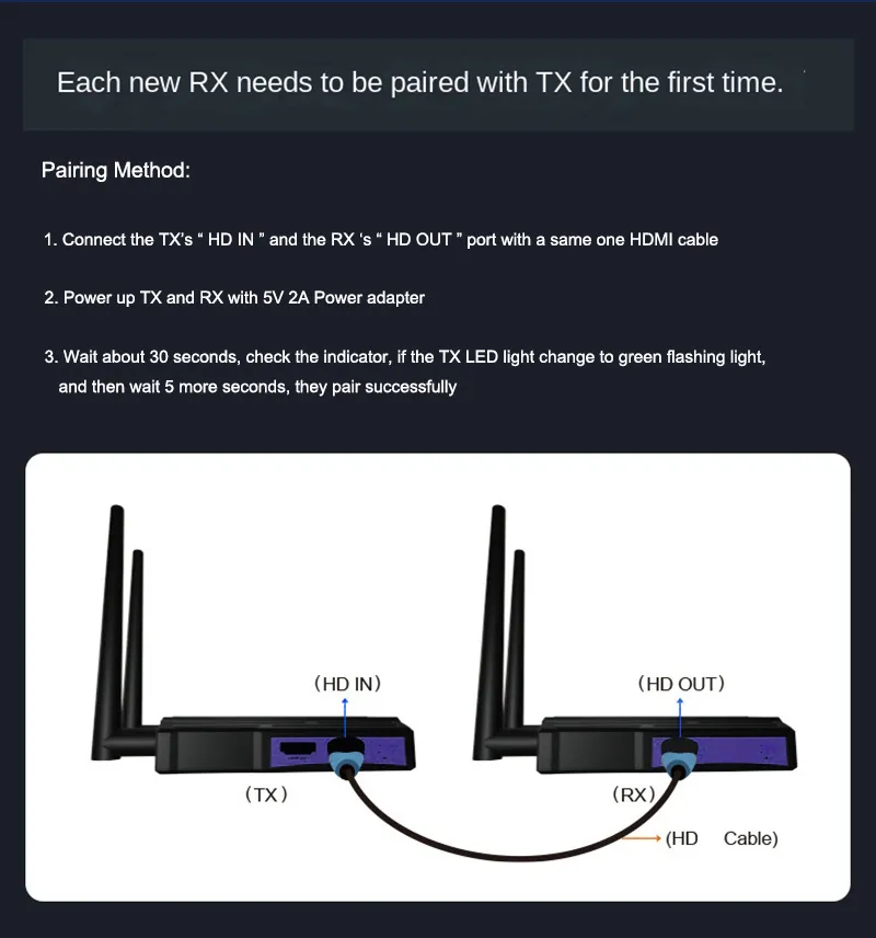 Pixoma HWLC-250MA, 250 metreye kadar kablosuz HDMI iletimini düşük gecikme süresi (0.06s) ile sunar. Full HD 1080P görüntü aktarımı sayesinde konferans, sinema sistemleri ve canlı yayın gibi uygulamalarda net ve kesintisiz görüntü sağlar. 4 cihaza kadar çoklu alıcı desteğiyle geniş çaplı dağıtımlar için uygundur. Local Loop Out özelliği sayesinde verici üzerinden aynı anda hem lokal hem de uzaktaki ekrana çıkış yapılabilir. ABS gövdesi hafiflik ve dayanıklılığı bir araya getirirken, paket içeriği kurulum için ihtiyaç duyacağınız tüm ekipmanları barındırır.