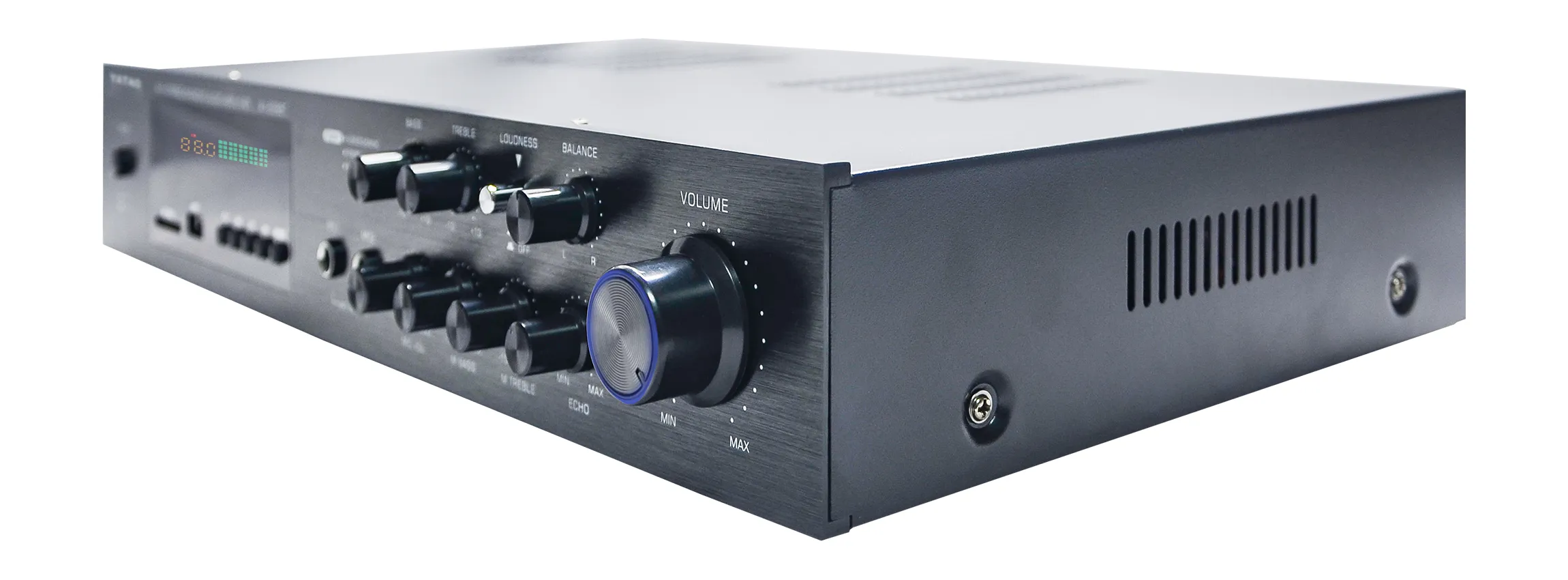 USB, SD kart, mikrofon ve ekran bağlantıları ile geniş kullanım olanakları sağlar. MP3, VCD, DVD, CD gibi çeşitli medya cihazlarıyla uyumludur. Dayanıklı alüminyum panel tasarımı ile uzun ömürlüdür.