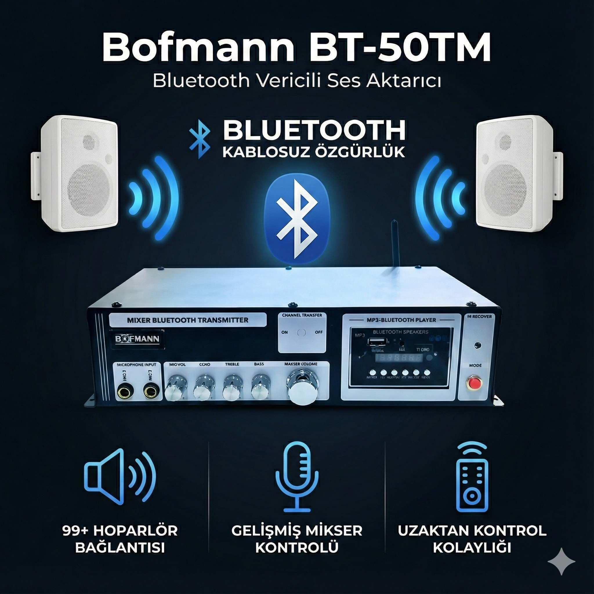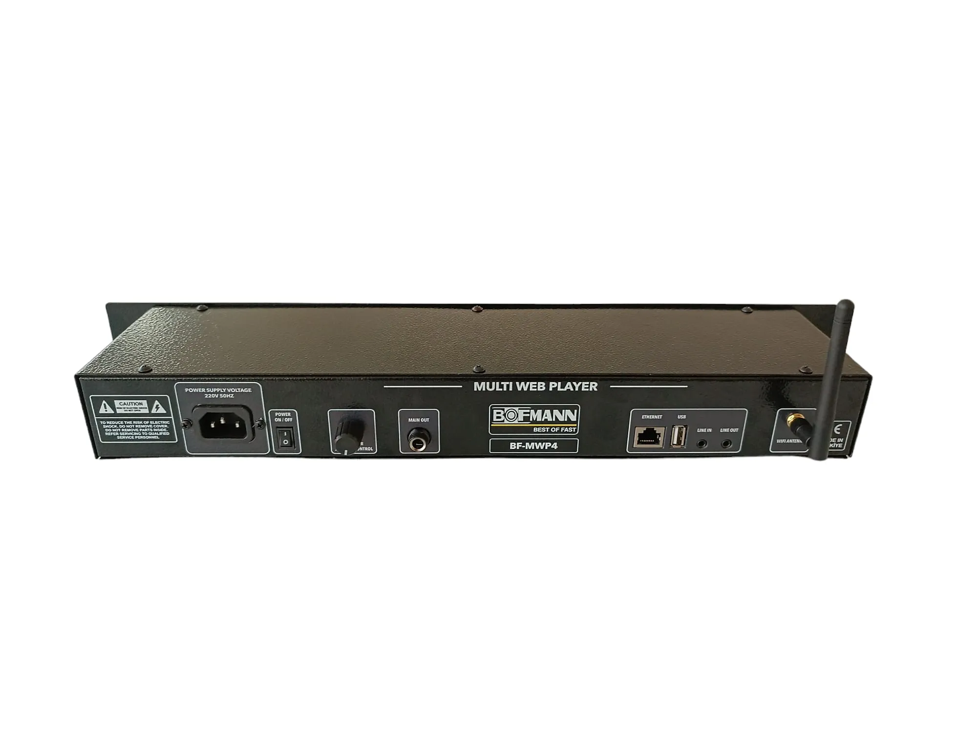 Bofmann MWP, modern yayın ihtiyaçlarına uygun şekilde tasarlanmış çok yönlü bir Multi Web Player cihazıdır. İnternet radyosu, USB player ve mobil uygulama desteği sayesinde müzik yayınında esneklik sağlar. 4Stream uygulaması üzerinden Spotify, AirPlay gibi servislerden kolayca müzik akışı yapabilirsiniz.