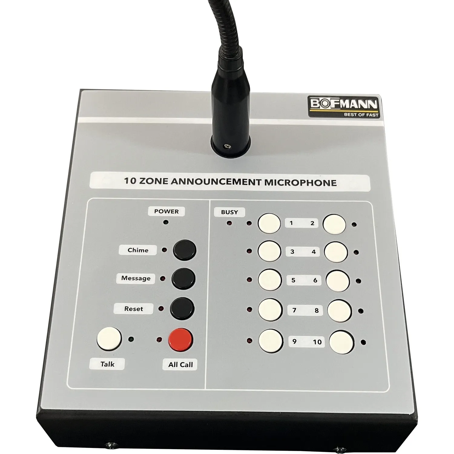 BOFMANN BF-ZM10, çok bölgeli seslendirme ve acil durum sistemleri için geliştirilmiş profesyonel bir anons mikrofon ünitesidir.