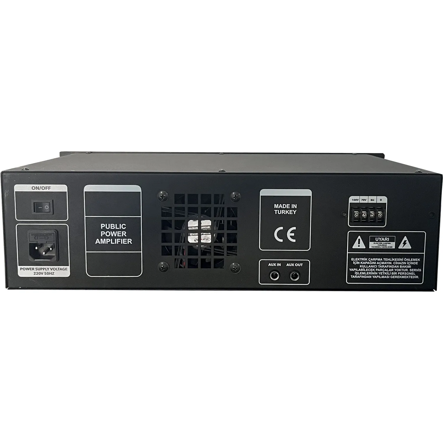 BOFMANN TP-150T, 150W çıkış gücüne sahip, trafolu mono güç amplifikatörüdür. 100V trafolu çıkışı sayesinde özellikle kamuya açık alanlardaki anons ve seslendirme sistemleri için uygundur. XLR ve 6.35 mm jack girişleri ile farklı ses kaynaklarına bağlanabilir. Speakon çıkışı güvenli hoparlör bağlantısı sunar. Ön panelde yer alan LED göstergeler sayesinde cihaz durumu anlık olarak izlenebilir. Kısa devre ve aşırı yük koruması ile sisteminizi güvenli şekilde çalıştırır. Kompakt ve rack montaj uyumlu tasarımı sayesinde dar alanlara kolaylıkla entegre edilebilir.