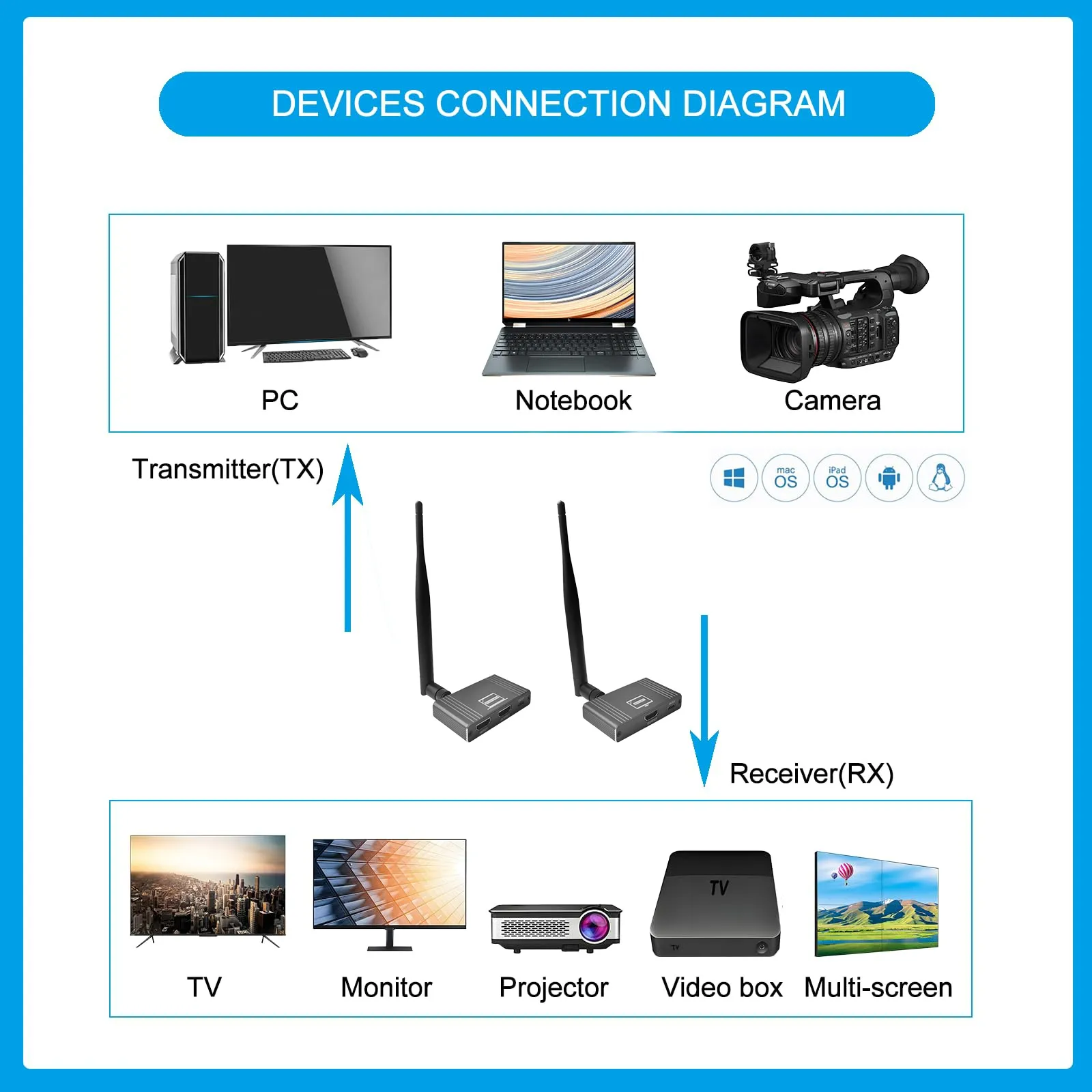 Pixoma HWL-180M, kablosuz görüntü aktarım teknolojisinde pratik ve etkili bir çözüm sunar. 180 metreye kadar kesintisiz 1080P@60Hz HDMI sinyal iletimi sağlar. Multi-point to point özelliği sayesinde tek bir kaynak birden fazla alıcıya bağlanabilir. Yüksek kaliteli alüminyum gövdesi ve kolay kurulum avantajıyla ev sinema sistemlerinden ticari AV çözümlerine kadar geniş bir kullanım alanı sunar.