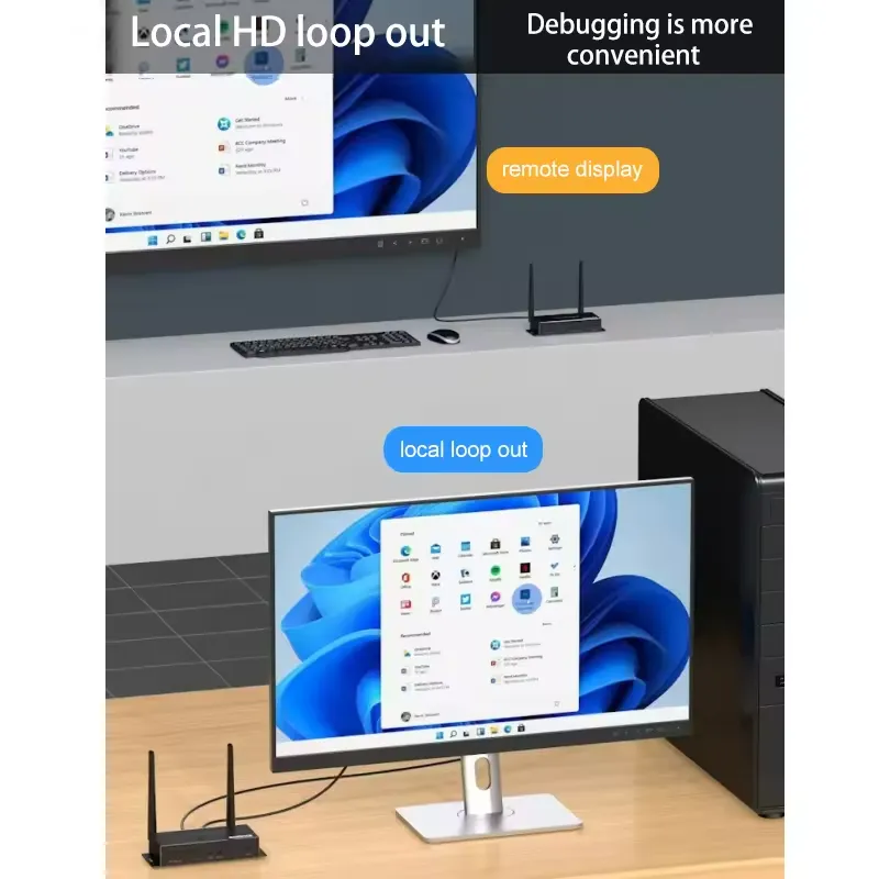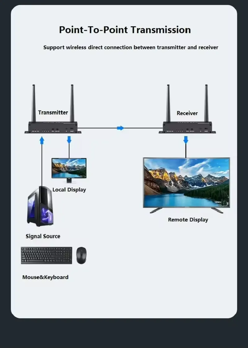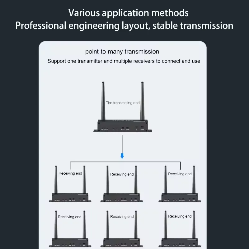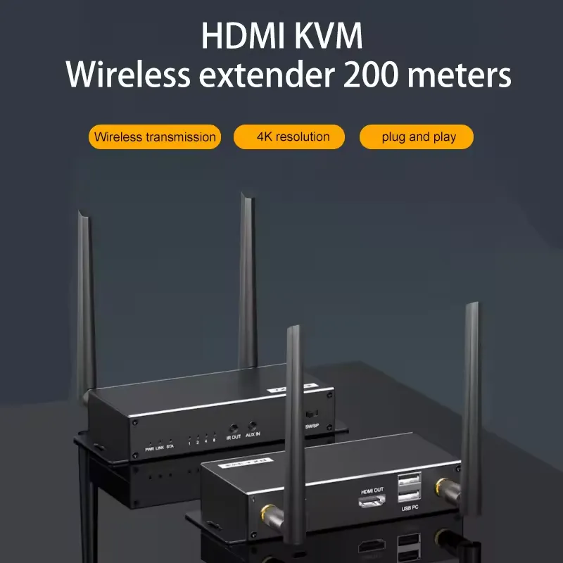 Pixoma HKWL-200M, 200 metreye kadar kablosuz HDMI KVM uzatımı sağlayan yüksek performanslı bir cihazdır. 4K@30Hz çözünürlüğü HDMI V1.4 ile destekler. Çoklu nokta (15'e kadar) ile tek noktaya veya tek noktadan çoklu noktaya bağlantı kurabilir. KVM özelliği sayesinde uzaktan klavye ve mouse kontrolü yapılabilir. Alüminyum alaşımlı yapısı dayanıklılık sağlarken, duvar geçişi desteğiyle farklı odalarda etkili iletişim kurar. Eğitim, konferans, güvenlik ve AV sistemlerinde ideal çözümdür.