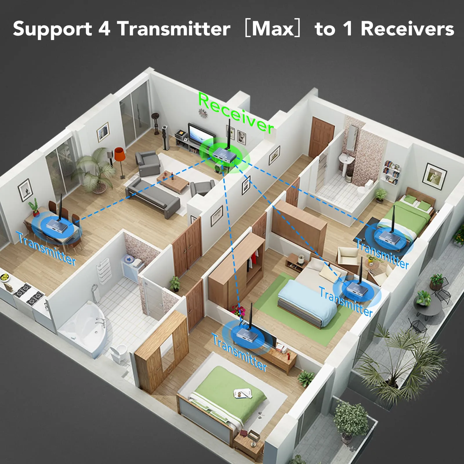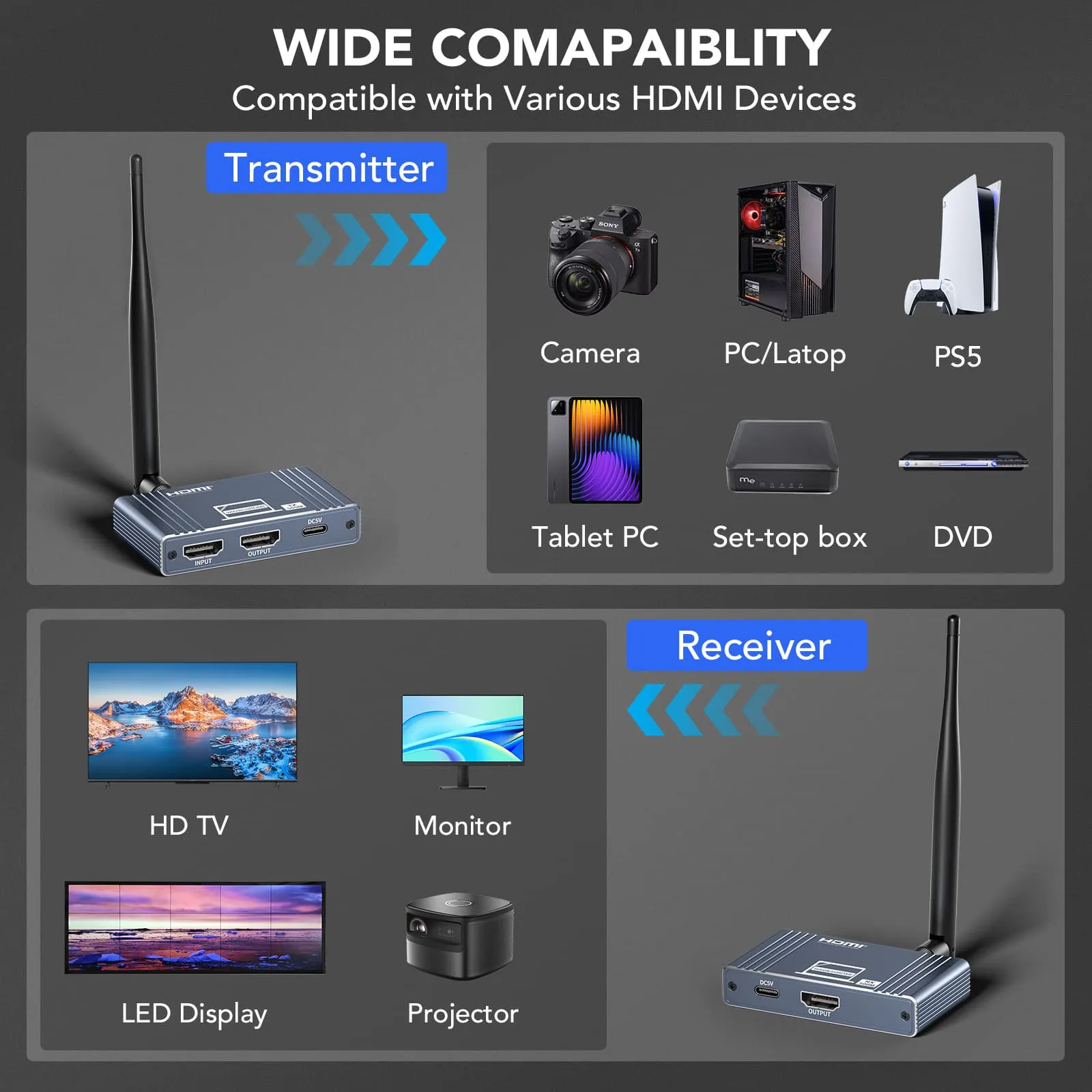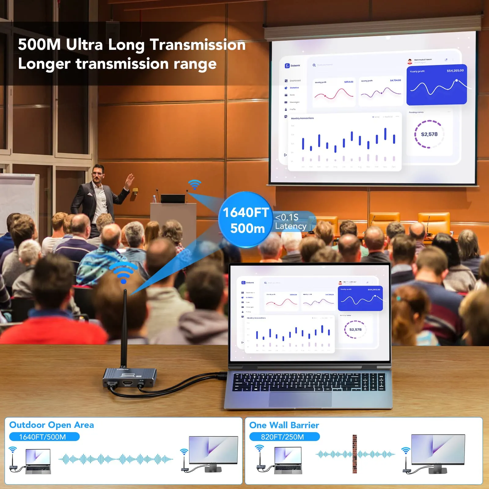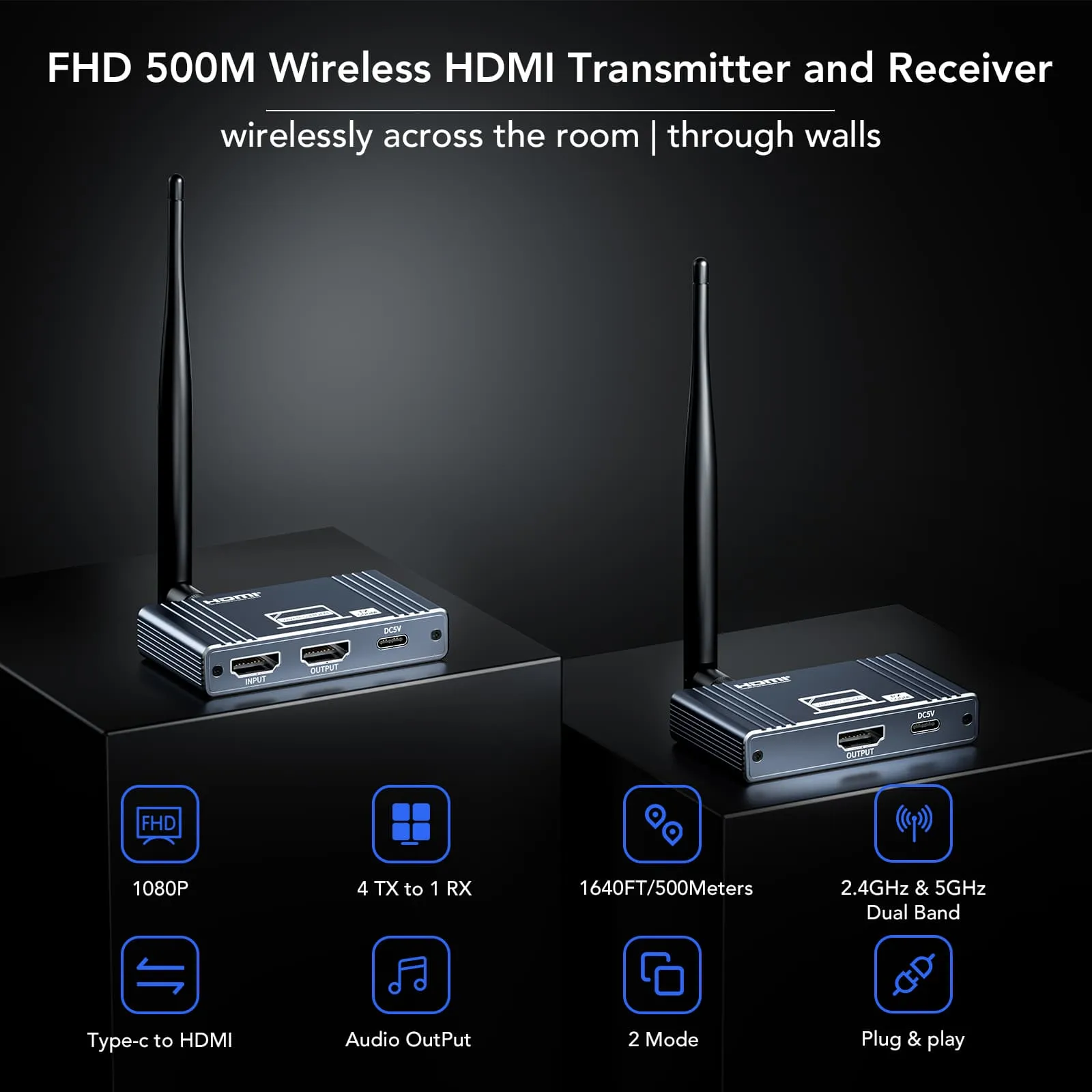 Pixoma HWL-500M, HDMI sinyalini kablosuz olarak 500 metreye kadar ileten yüksek performanslı bir kablosuz HDMI extender çözümüdür. 1080P@60Hz çözünürlükte kristal netliğinde görüntü aktarımı sağlar. Multi-point to point desteği ile tek bir kaynak cihazdan aynı anda birden fazla alıcıya bağlantı yapılabilir. Duvar geçiş desteği sayesinde yapısal engellerde bile kesintisiz iletişim sunar. Dayanıklı alüminyum alaşım kasası ile uzun ömürlü kullanım için idealdir.