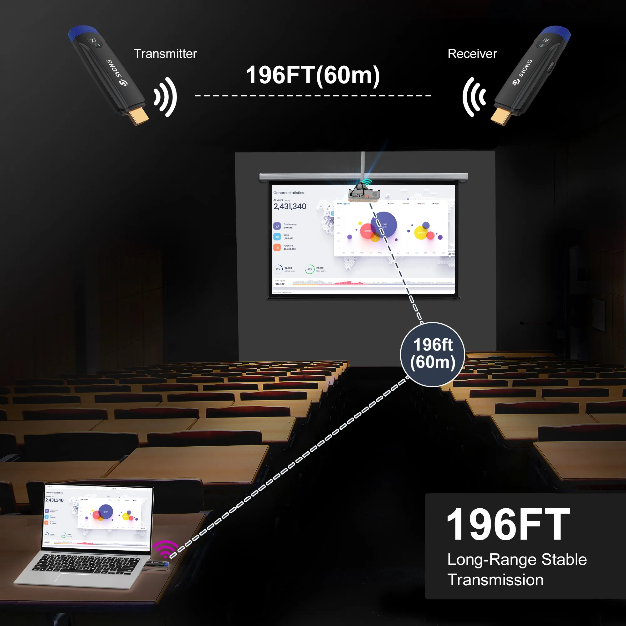 Pixoma HWL-60M, 60 metreye kadar mesafede kablosuz HDMI görüntü aktarımı için taşınabilir ve çoklu nokta destekli (8 cihaza kadar) bir çözümdür. HDMI 1.4 ve 1080P @ 60Hz desteği ile yüksek görüntü kalitesi sunar. ABS+PC gövdesi sayesinde hafif ve dayanıklıdır. Farklı HDMI girişleri için dönüştürücü kablolarla birlikte gelir. Konferans salonları, ev sinema sistemleri, dijital içerik sunumları ve geçici yayın sistemleri için idealdir.